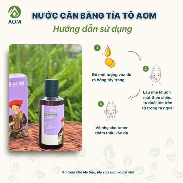 Sử dụng các nguyên liệu tươi sạch, Nước cân bằng Tía tô AOM có tác dụng: